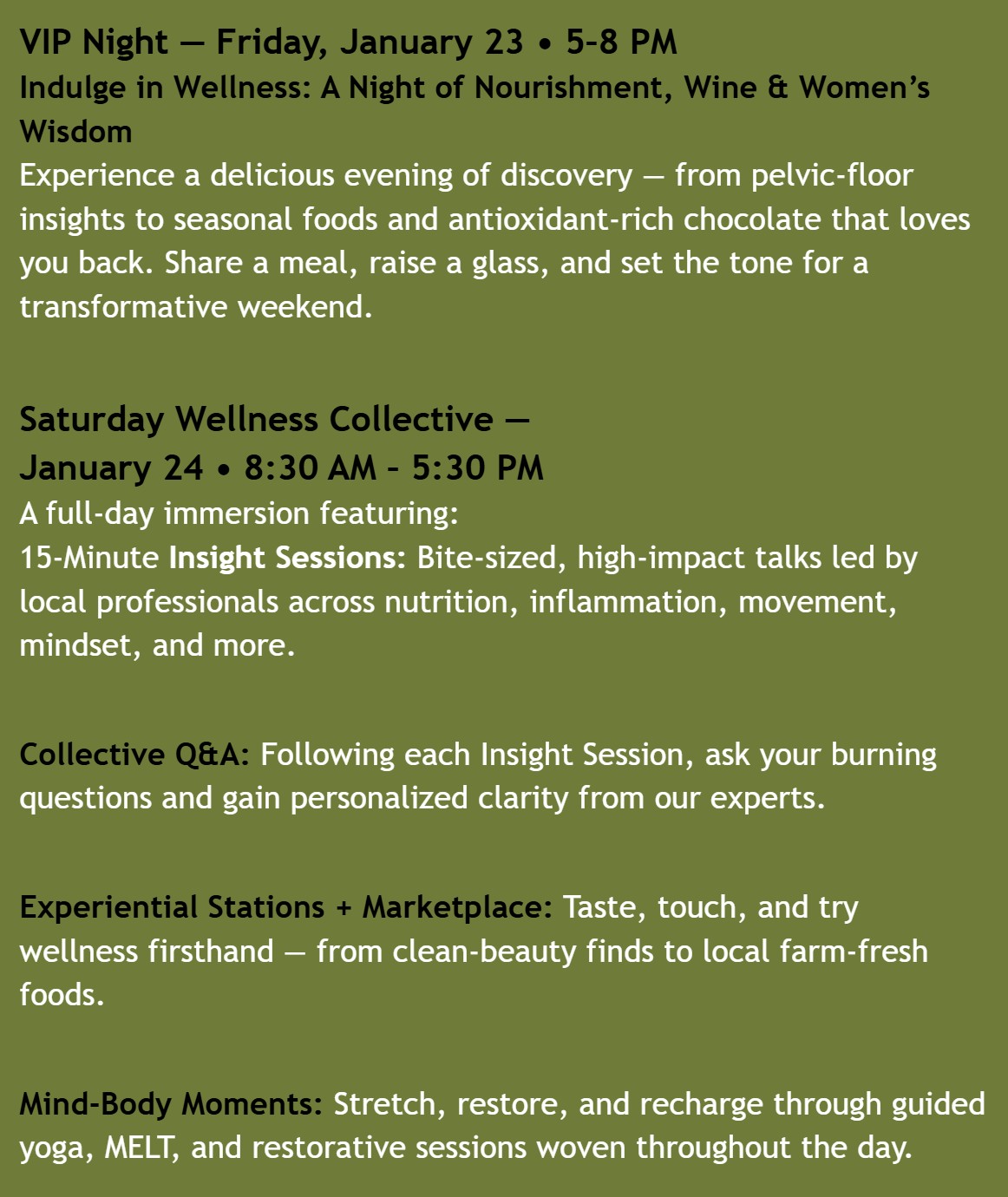 Wellness Collective 2026 - the most powerful room of the year. Join other like-minded women who are done settling and ready to thrive.